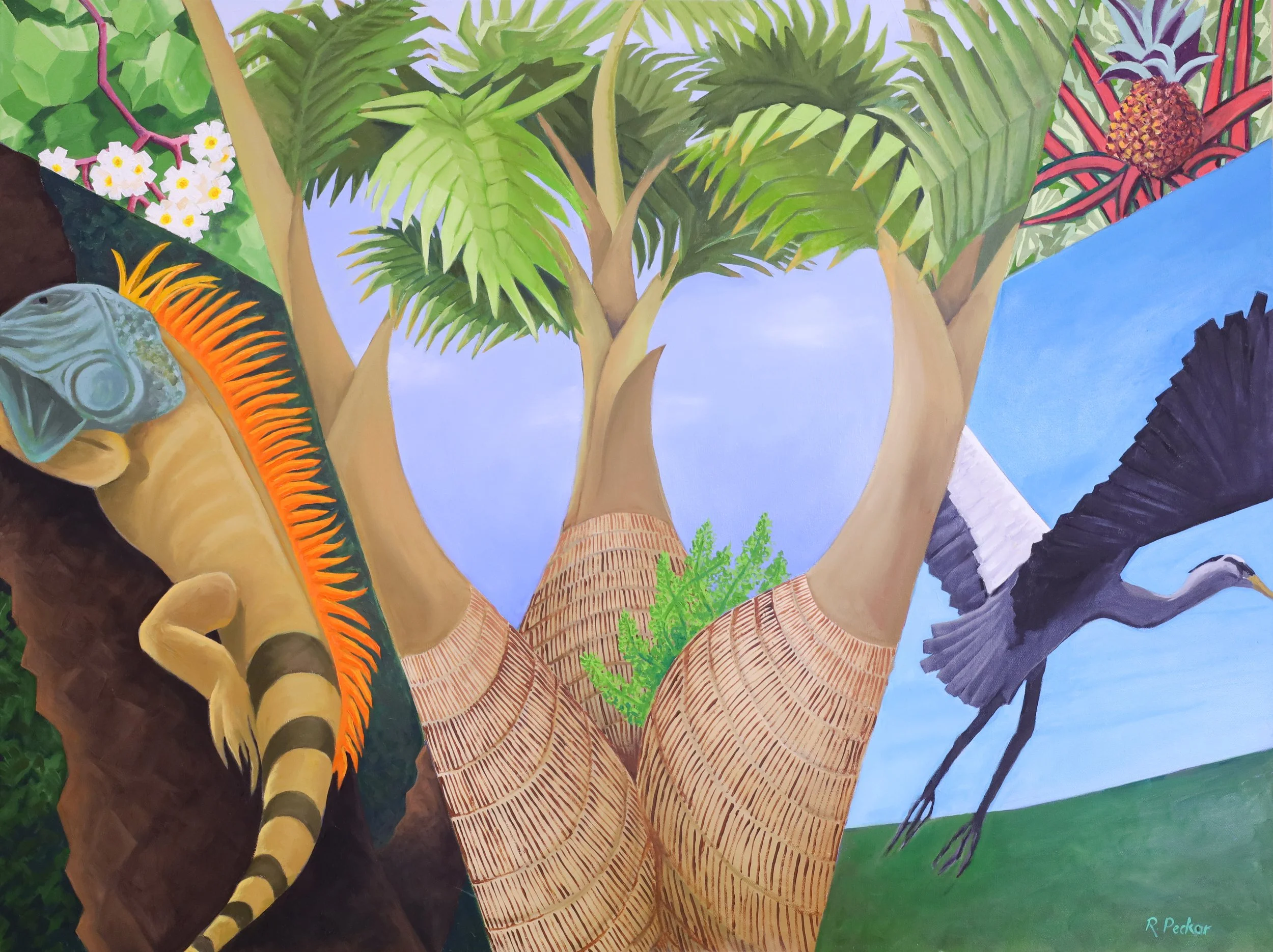 Robert Peckar is an oil painter living in Boca Raton, Florida. He started painting in 1977 when he studied painting with artist Harvey Dash in Nyack, New York. He is also an attorney, having founded an international construction law practice in 1978. While practicing law his “doodles” on legal pads evolved into the studies for his paintings. Those paintings reflected a “geometric” or architectural perception of objects and people, likely a response to his world of buildings and engineering. Since moving to Florida, Bob’s paintings reflect his passion for the beautiful shapes and colors of the fauna and animal life of southern Florida.